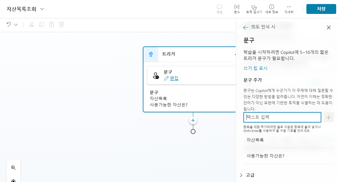 토픽추가에서 트리거 구문을 지정(생성형 AI 인 경우 능동형으로 작성)