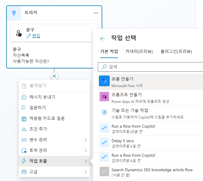 작업호출-흐름만들기 선택