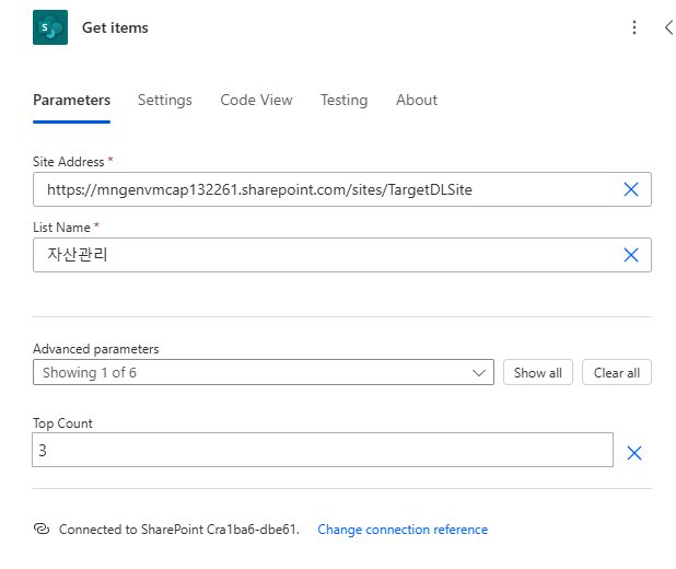 Sharepoint 목록 확인 - 목록 이름으로 List Name 업데이트 및 Top count 지정