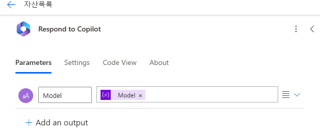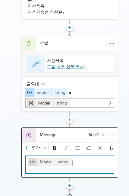 Apply to Each 추가 후 Append to string variable 에 Model 설정