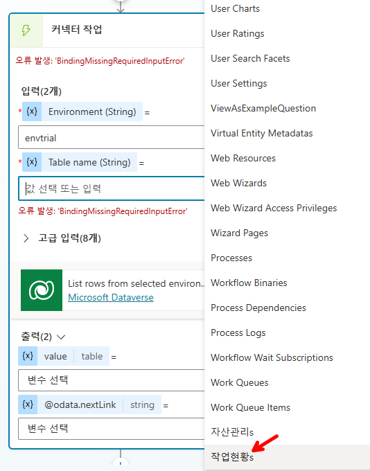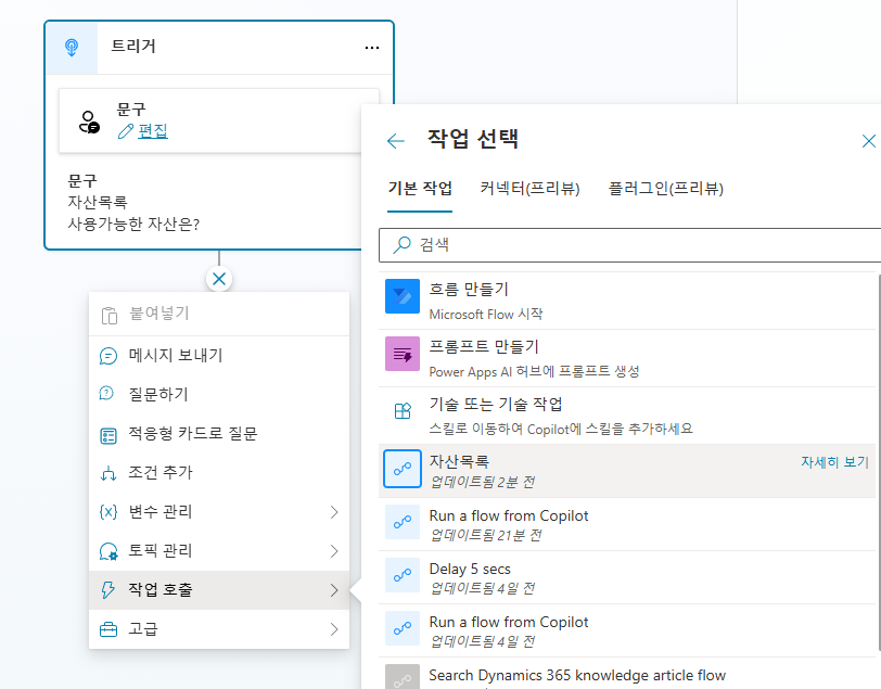 작업호출-흐름만들기 선택